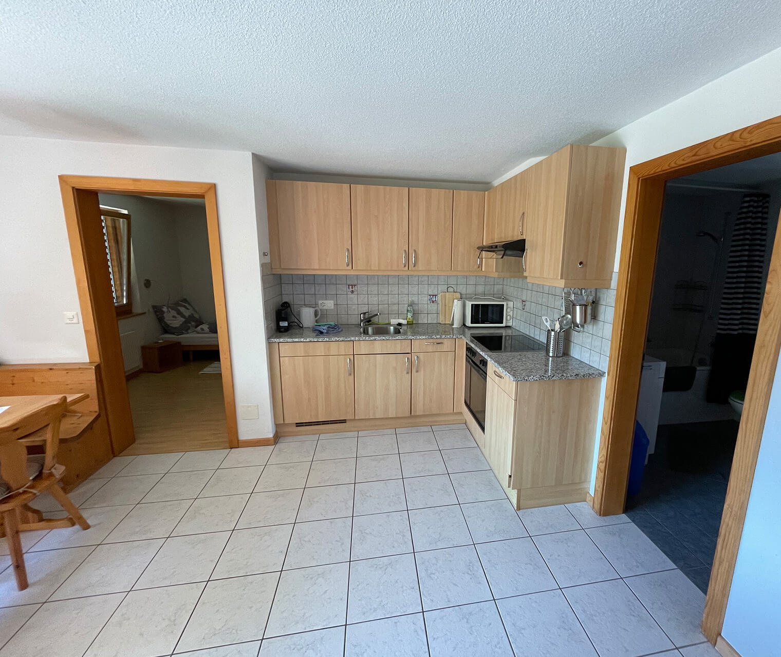 - Küche mit Geschirrspüler und Mikrowelle, Backofen und 4 Kochfelder Glaskeramik